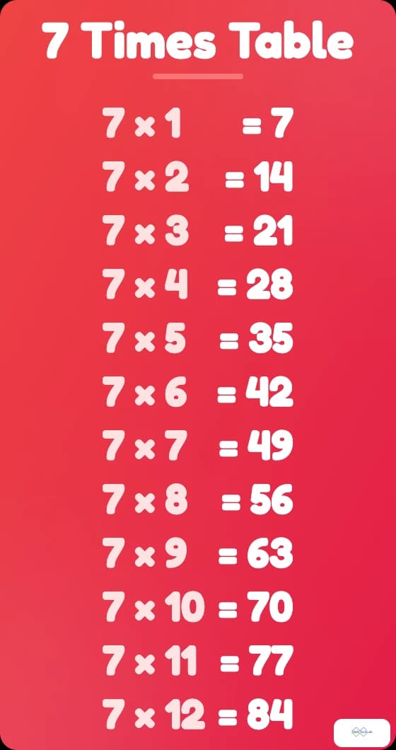 - ✔Downloadable Resources – Print or save the 7 Times Table chart for revision.